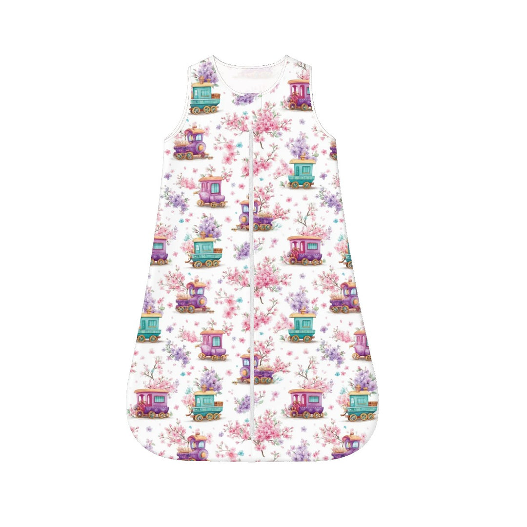 Whimsical Trains and Flowers Sleeveless Baby Sleep Sack