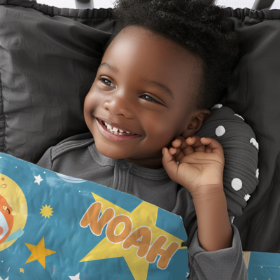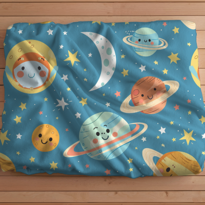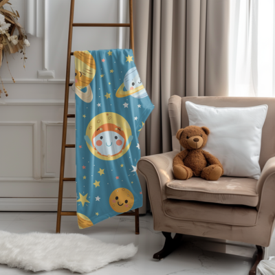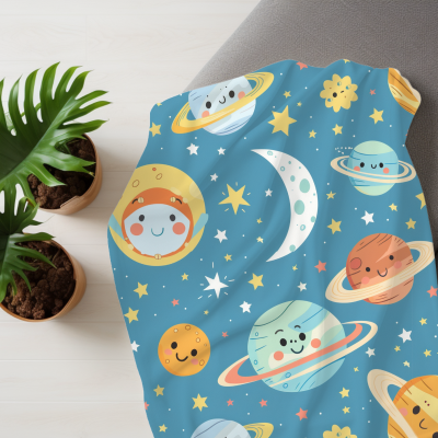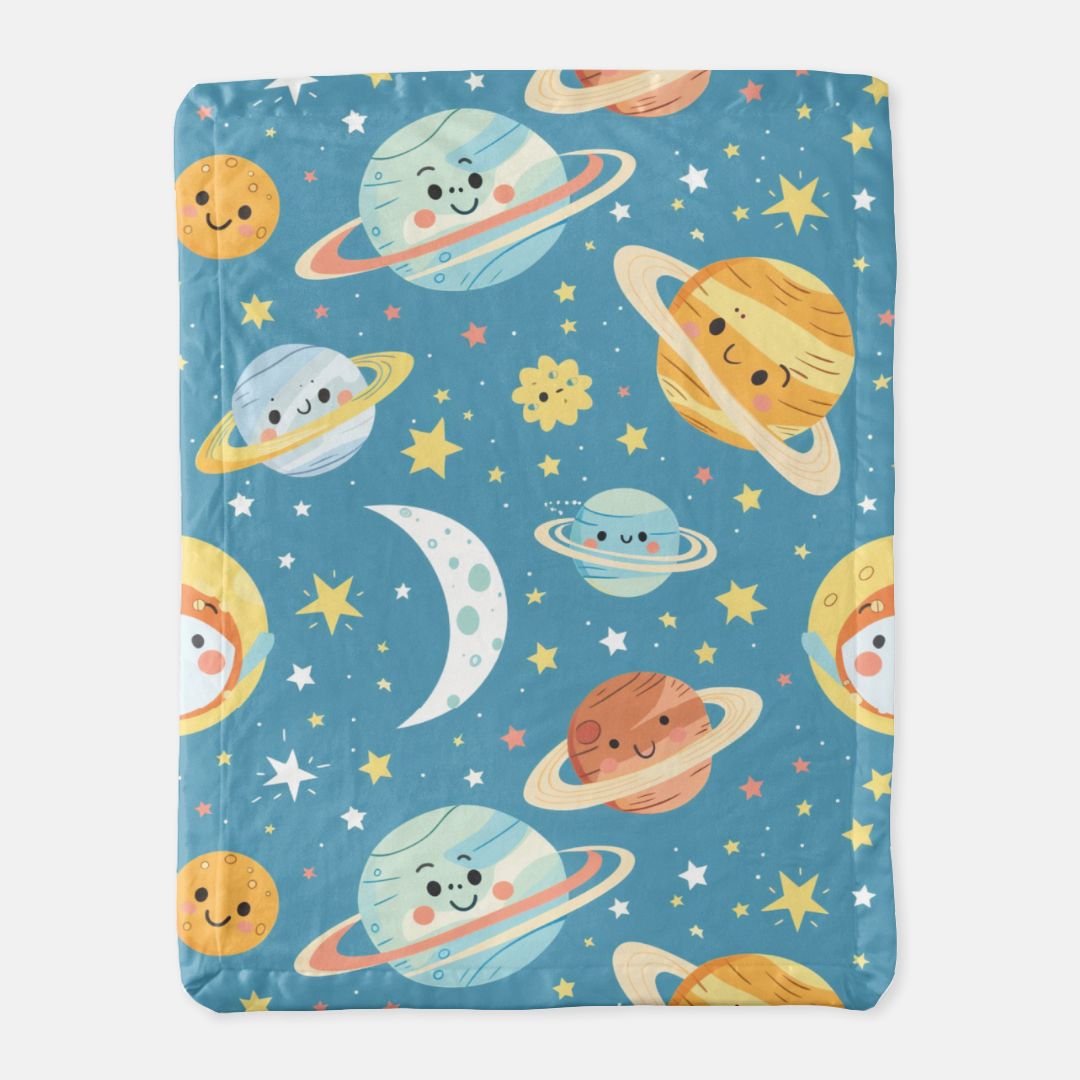 Wrap your little astronaut in a universe of comfort with this luxuriously soft minky blanket. Featuring a sprinkle of adorable planets and trimmed with smooth satin, it's a cosmic cuddle buddy for naptime adventures.