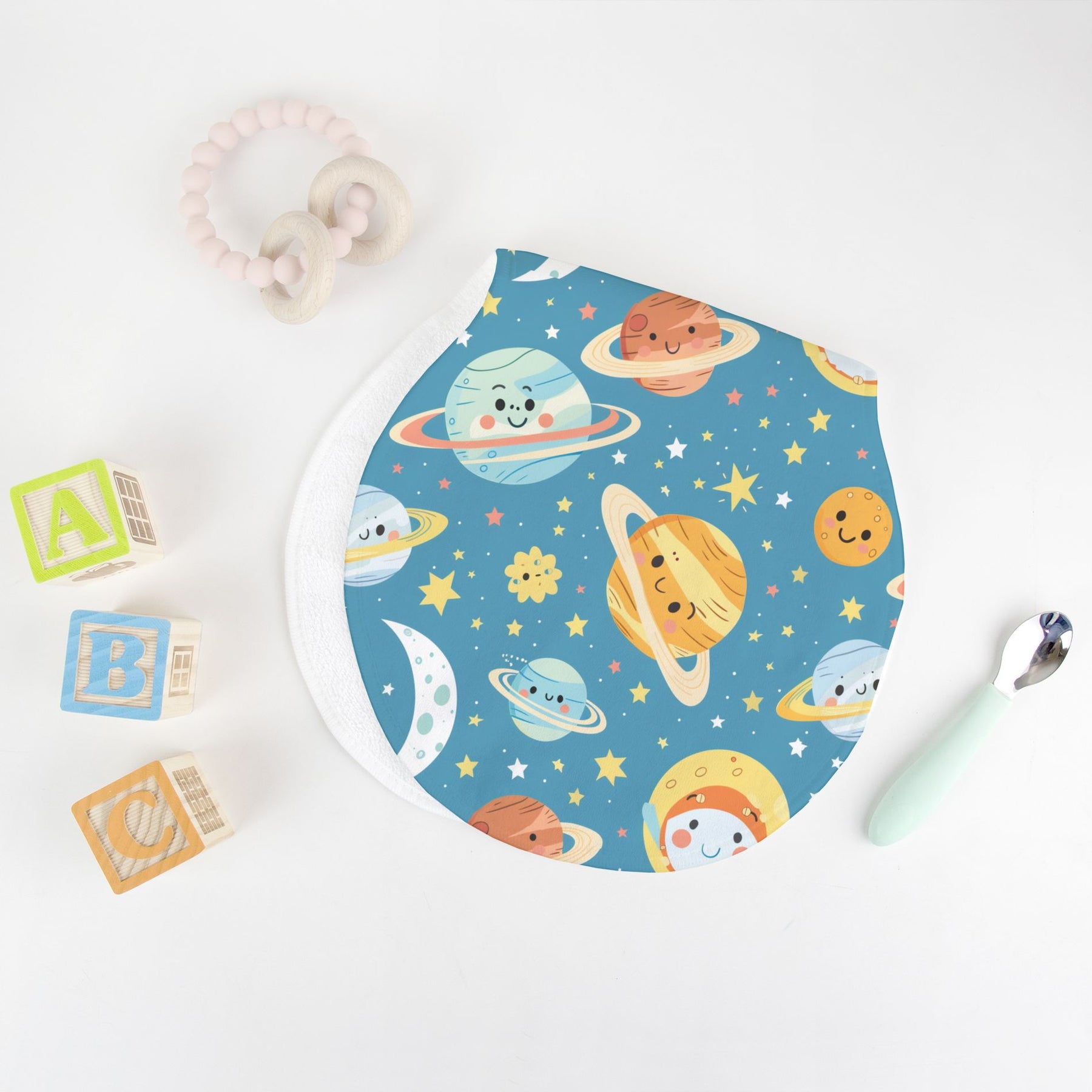 A messy moment is no problem with our peanut burp cloth. It's shaped for a comfortable fit over the shoulder and is made from ultra-smooth sheared microfibers and reverses to absorbent 100% cotton terry.