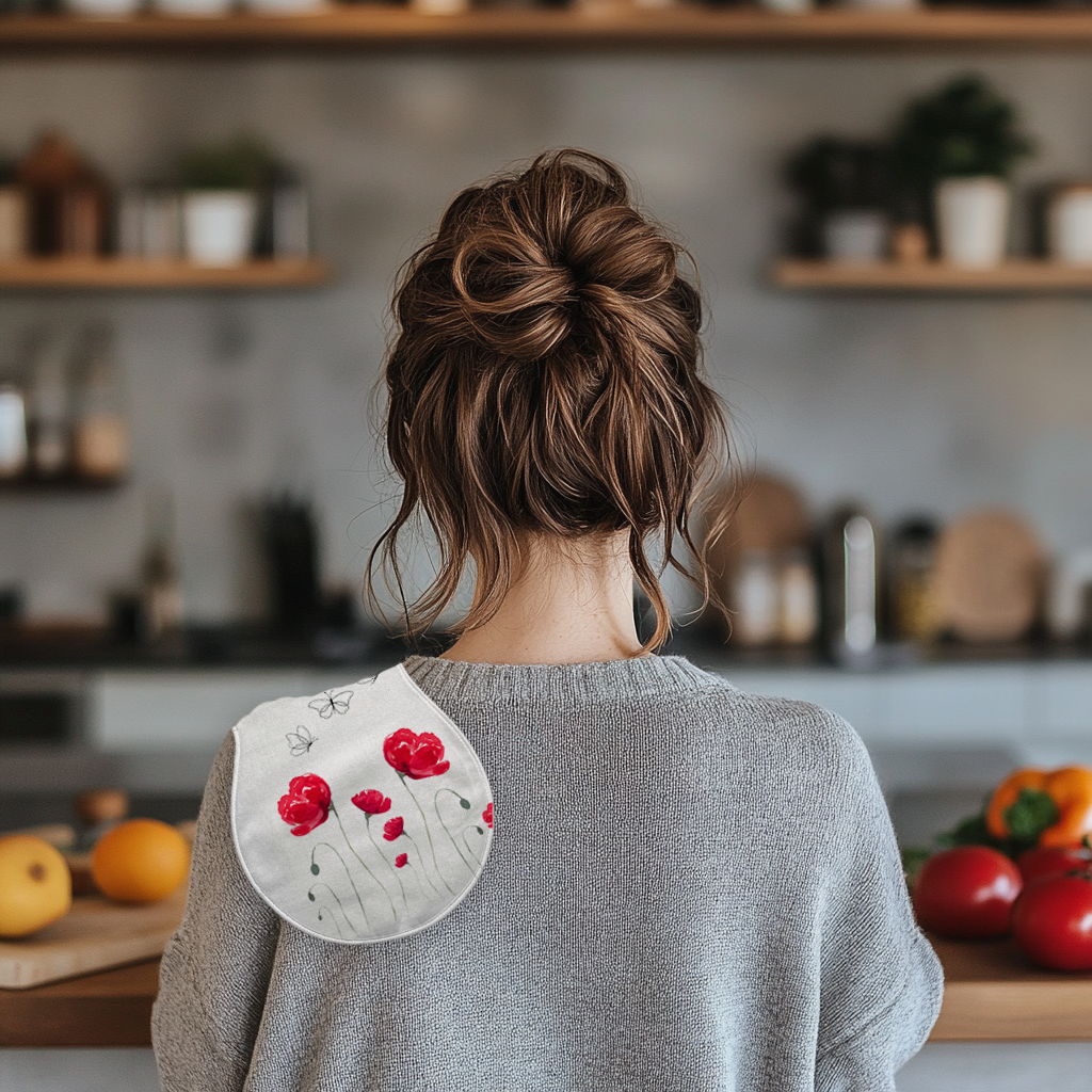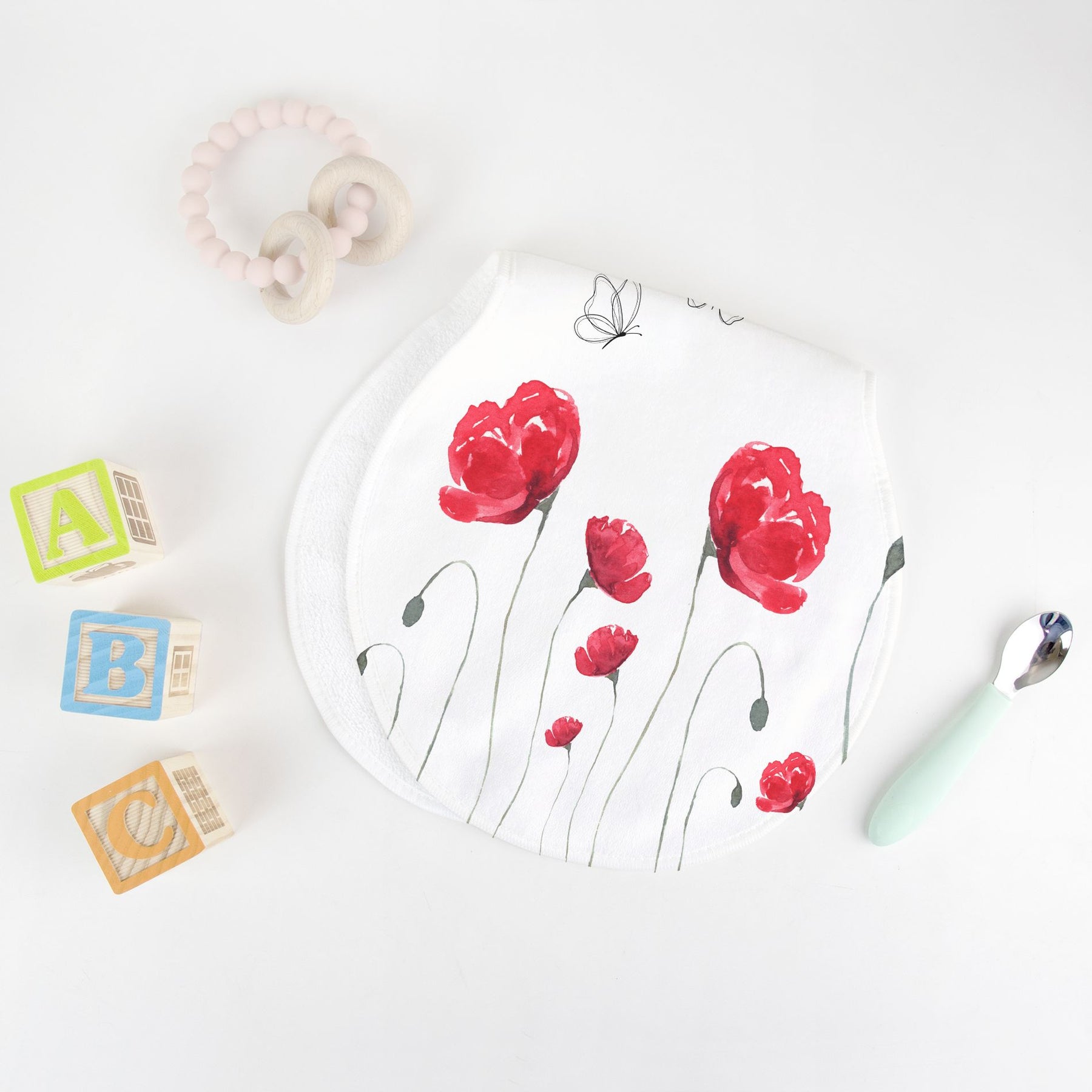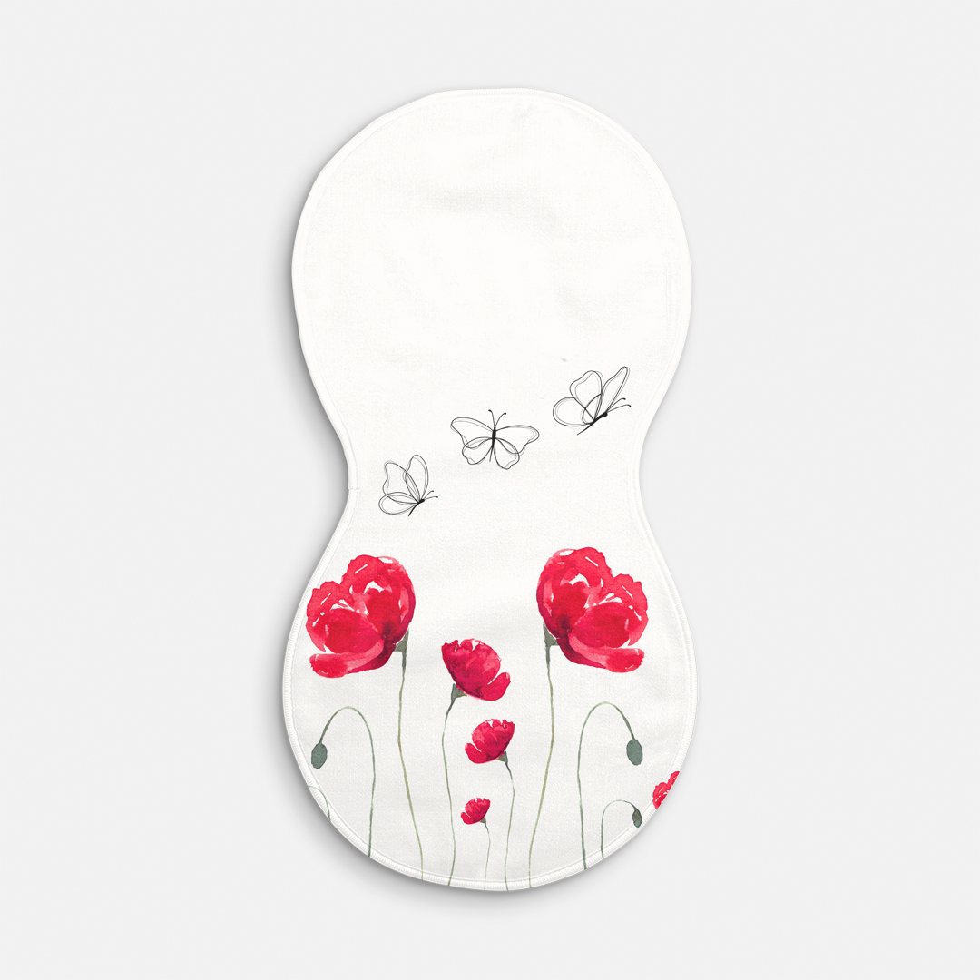 A messy moment is no problem with this peanut burp cloth. It's shaped for a comfortable fit over the shoulder and is made from ultra-smooth sheared micro velour polyester and reverses to absorbent 100% cotton terry.