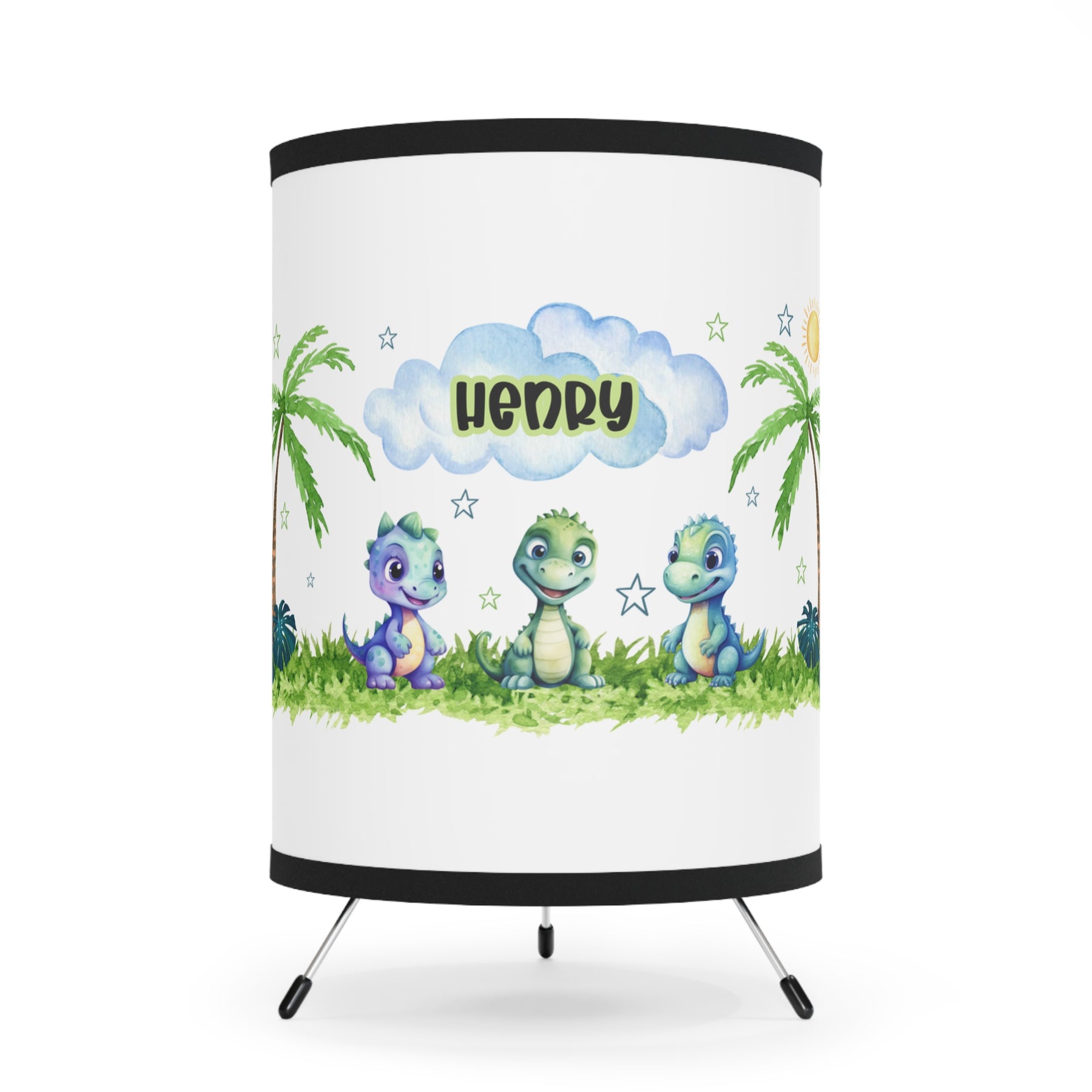 Watch your little one's imagination soar as they gaze upon the gentle glow of our Dino and Friends Tripod Lamp. Crafted with a sturdy tripod base and a soft, fabric shade, this lamp offers a comforting and inviting ambiance.