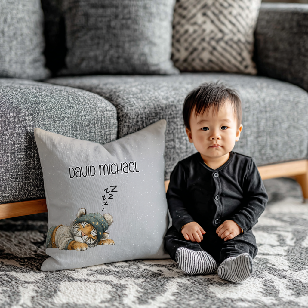 This sleeping tiger pillow cover makes a charming baby shower gift and a keepsake parents will treasure for years.