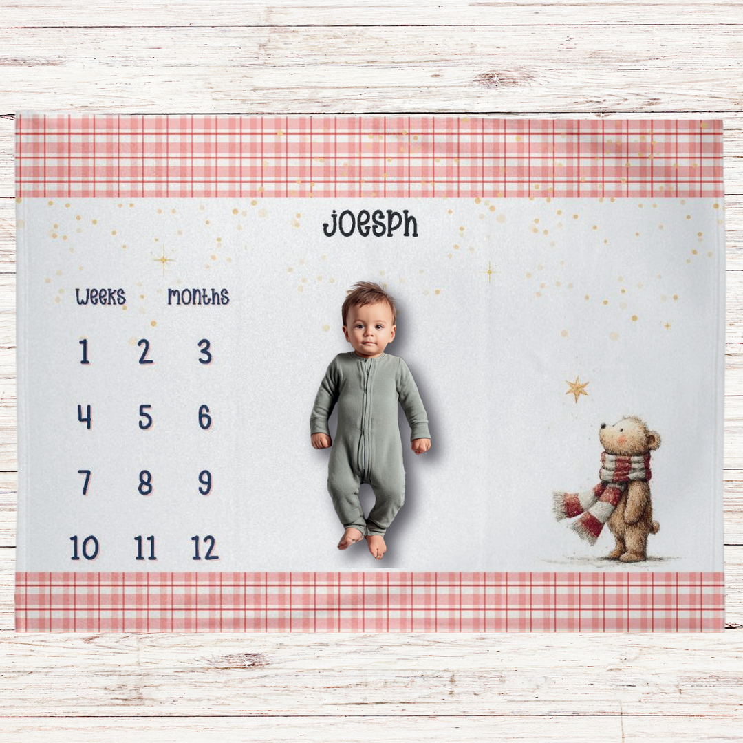 Plaid Teddy Bear Milestone Blanket