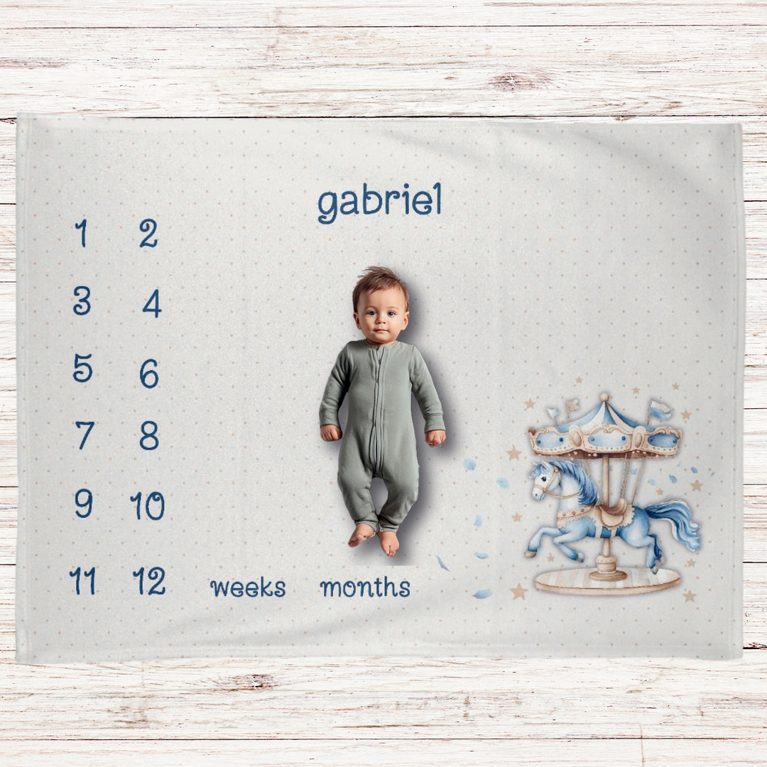 Blue Carousel Milestone Blanket