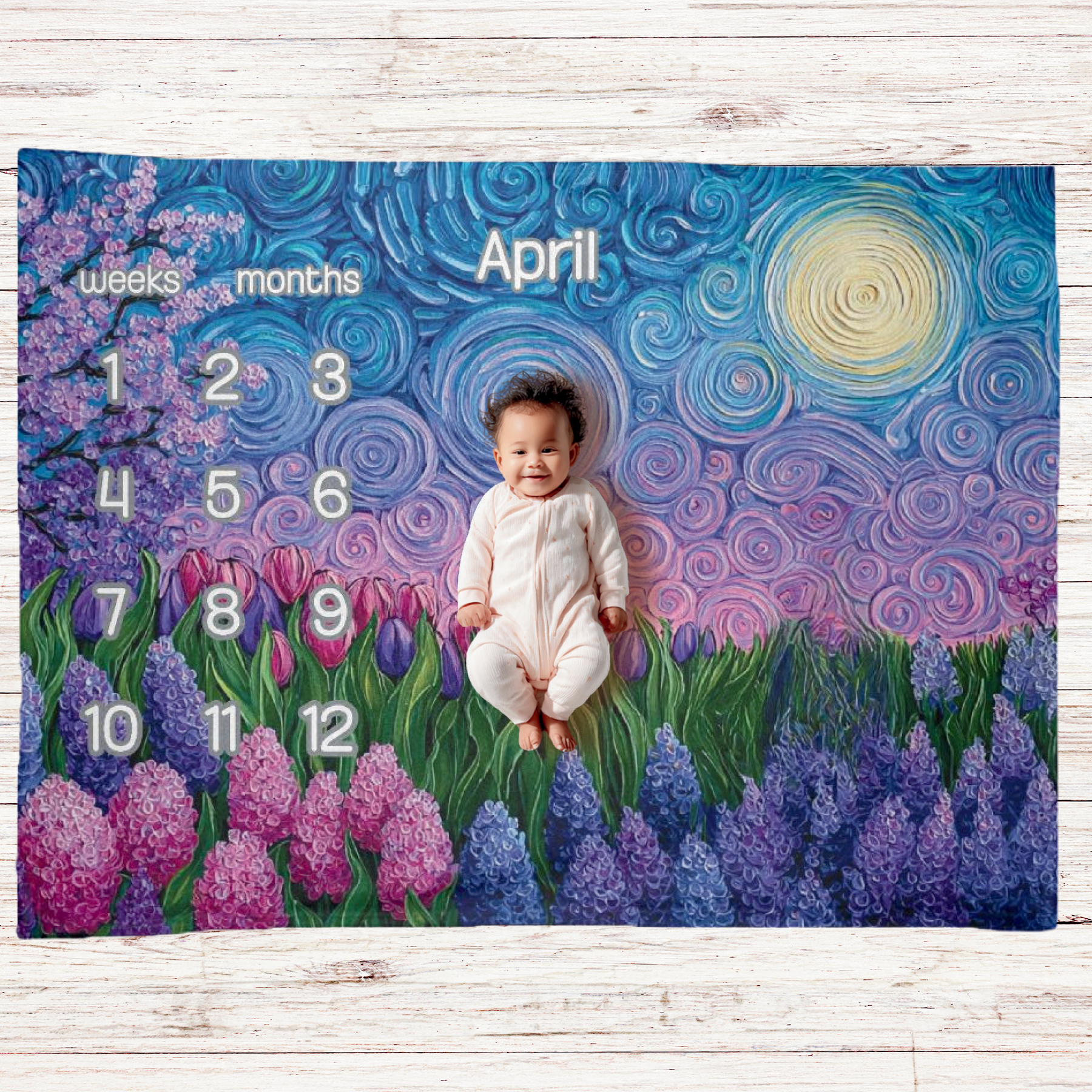 This colorful floral starry night milestone blanket makes a breathtaking baby shower gift and a keepsake parents will cherish for years.