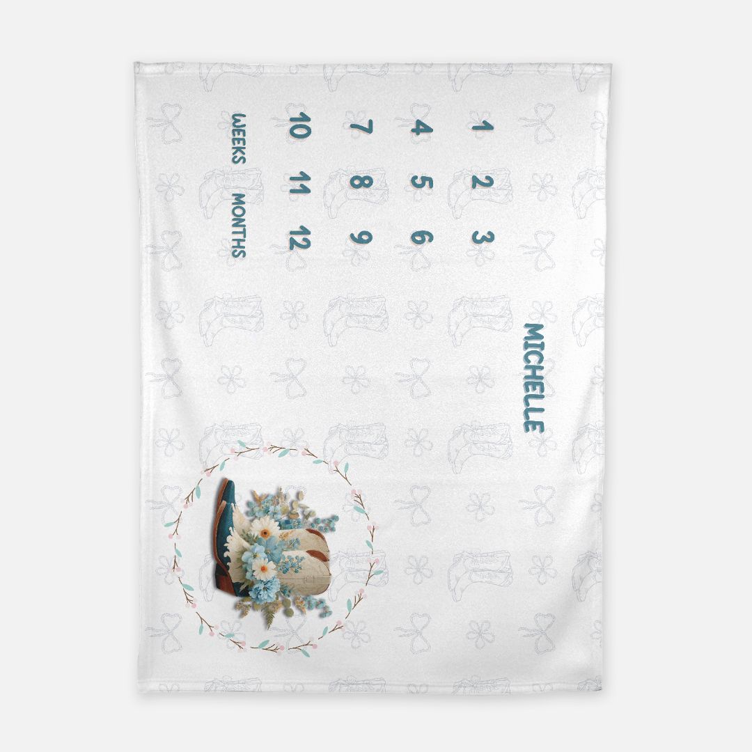 This floral cowgirl milestone blanket makes a charming baby shower gift and a keepsake parents will treasure forever.