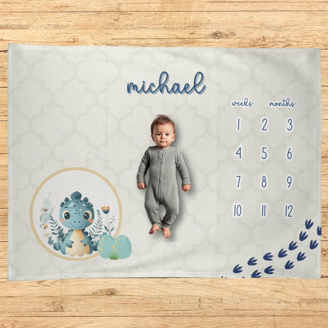 Blue Dinosaur Milestone Blanket