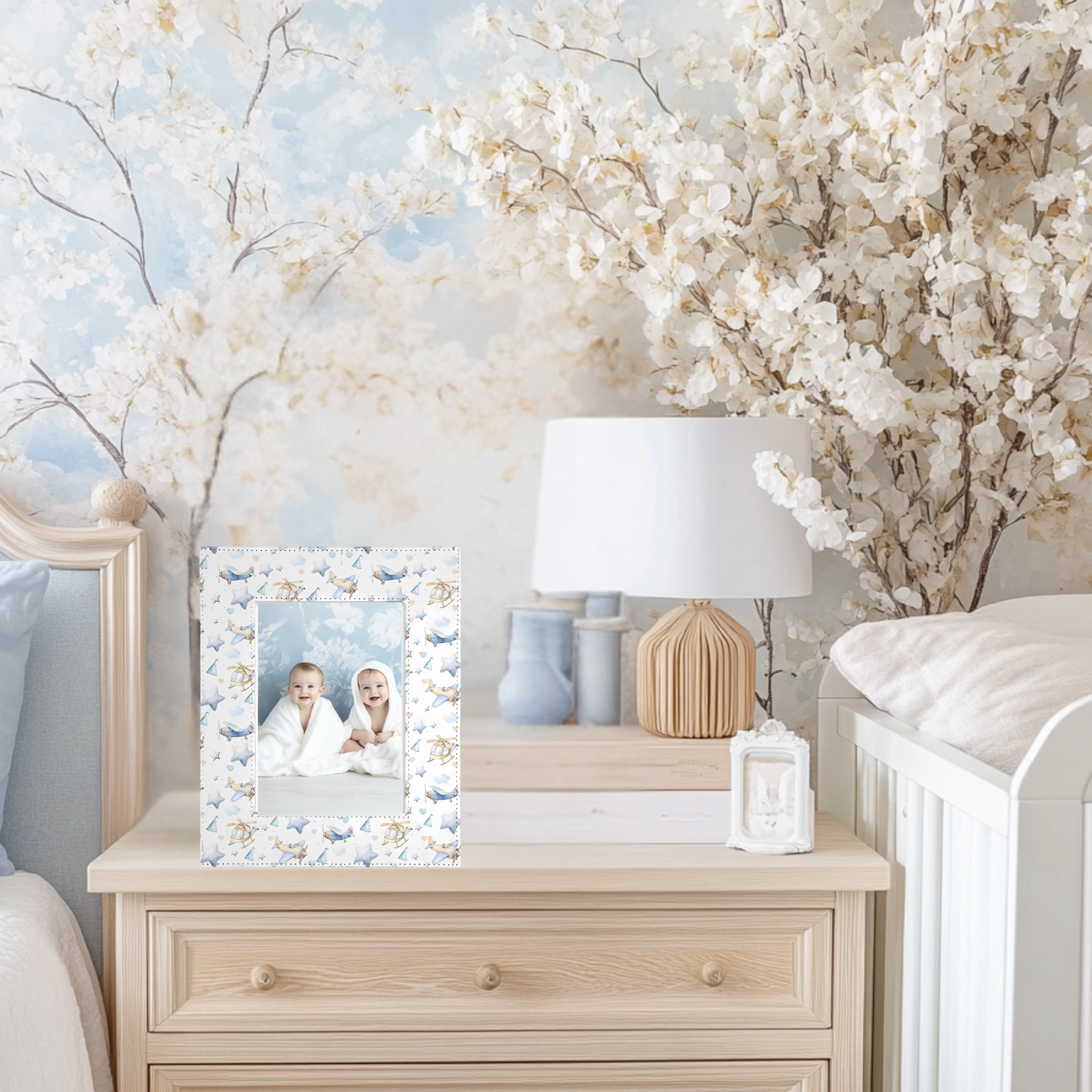 Featuring charming plane design, this frame adds a touch of whimsy to any room. Perfect for displaying your favorite photos of little ones, this frame is a delightful gift for new parents or any aircraft lover.
