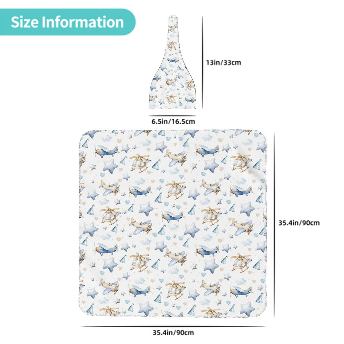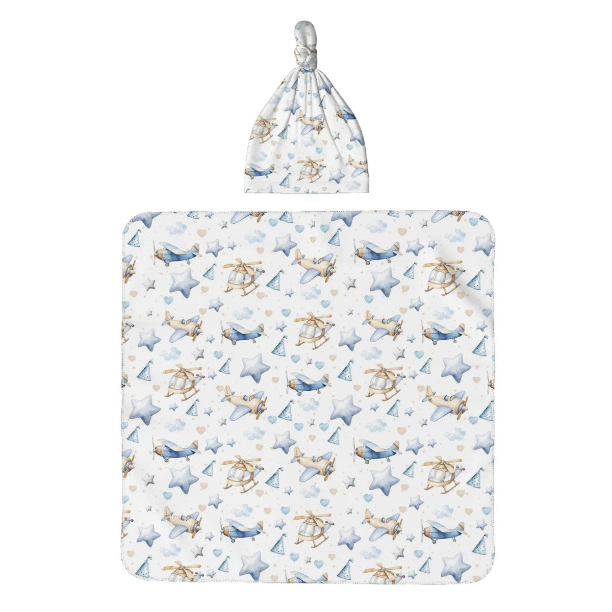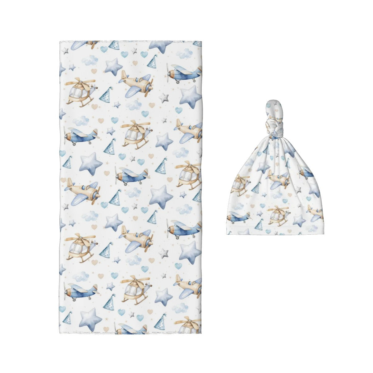 Soft and Breathable: Crafted from premium, breathable fabrics. Soft and cozy airplane themed swaddle set for baby boys
