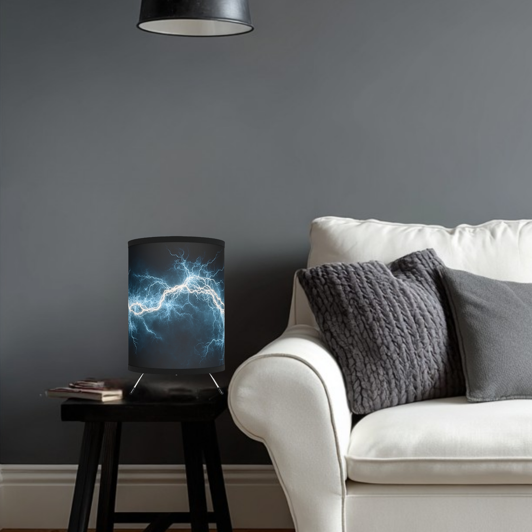 This tripod lamp brings stormy energy into a room with a high-resolution printed shade that captures crackling electric arcs across a deep, inky background. The warm-filtering polyester fabric softens the glow, turning dramatic imagery into cozy, ambient light that invites late-night reading or quiet reflection. The compact galvanized steel tripod gives it a modern, architectural feel while keeping the lamp lightweight and easy to move. With US/CA Type A plug compatibility and simple bulb requirements, it integrates into everyday spaces — from a moody bedroom corner to a creative studio — where bold visual accents meet functional lighting.