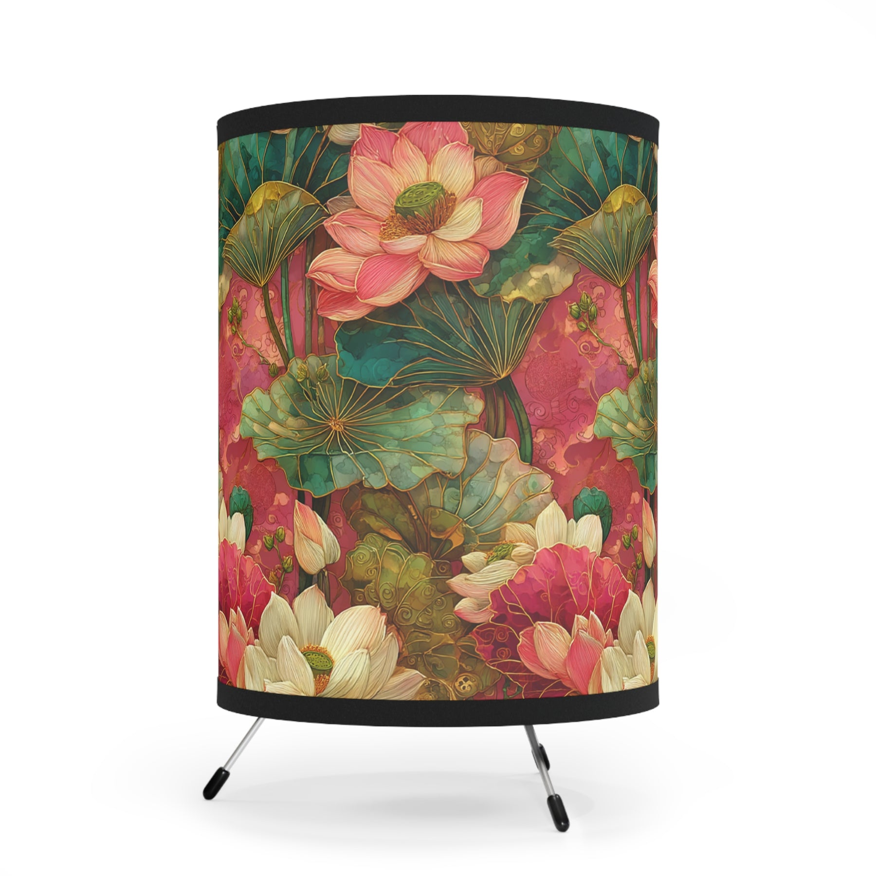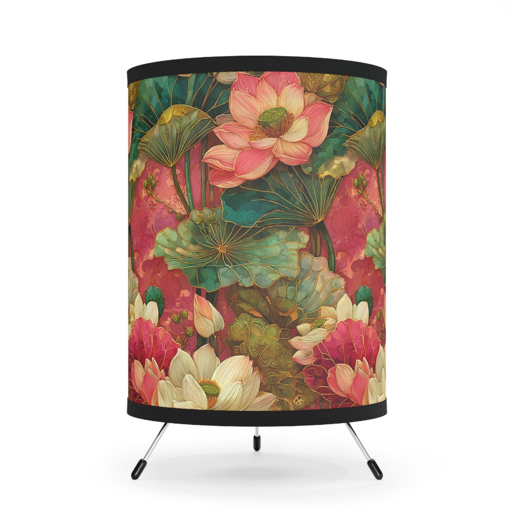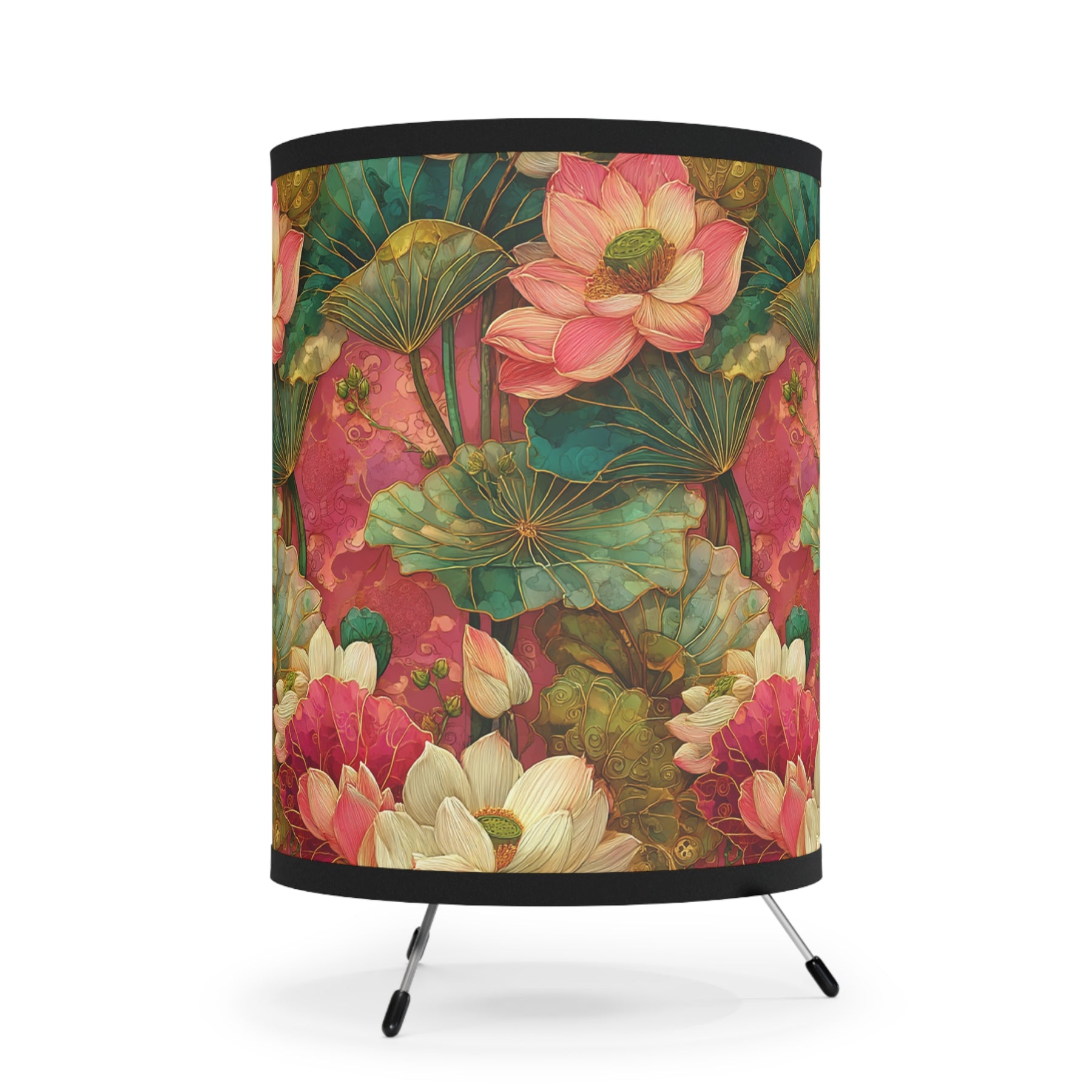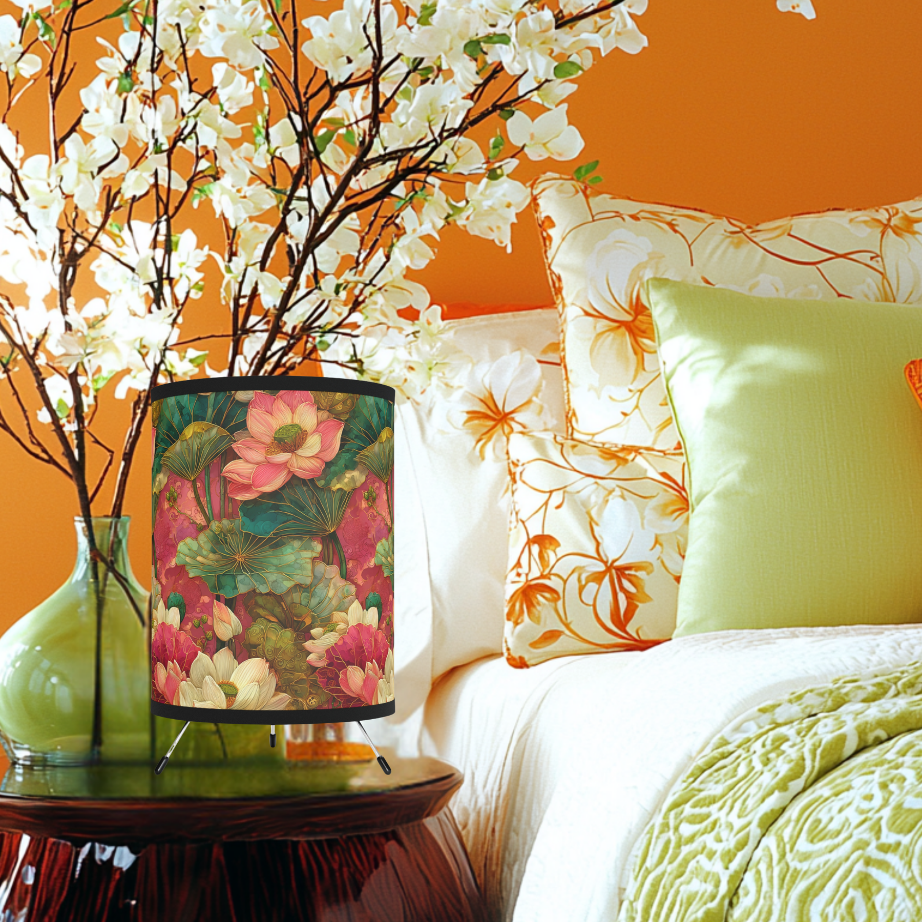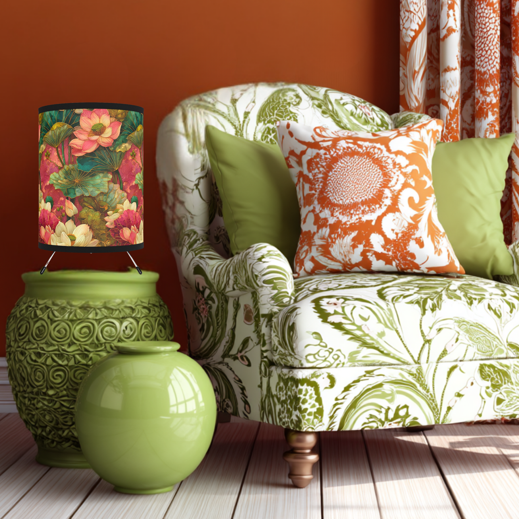 A sculptural tripod lamp that brings a quietly dramatic presence to bedside tables, reading nooks, or moody living spaces. The high-resolution polyester shade wraps the light in deep indigo florals and subtle jewel-toned accents, giving off a warm, soothing glow when lit. The slim galvanized steel tripod base keeps the silhouette airy and modern while the fabric-trimmed shade adds a refined finish. It plugs into US/CA outlets and accepts common CFL, incandescent, or LED bulbs, so it slips into evening routines without fuss. Place it where you want calm, textured light — a corner that needs a breath of color or a tabletop that asks for gentle atmosphere.