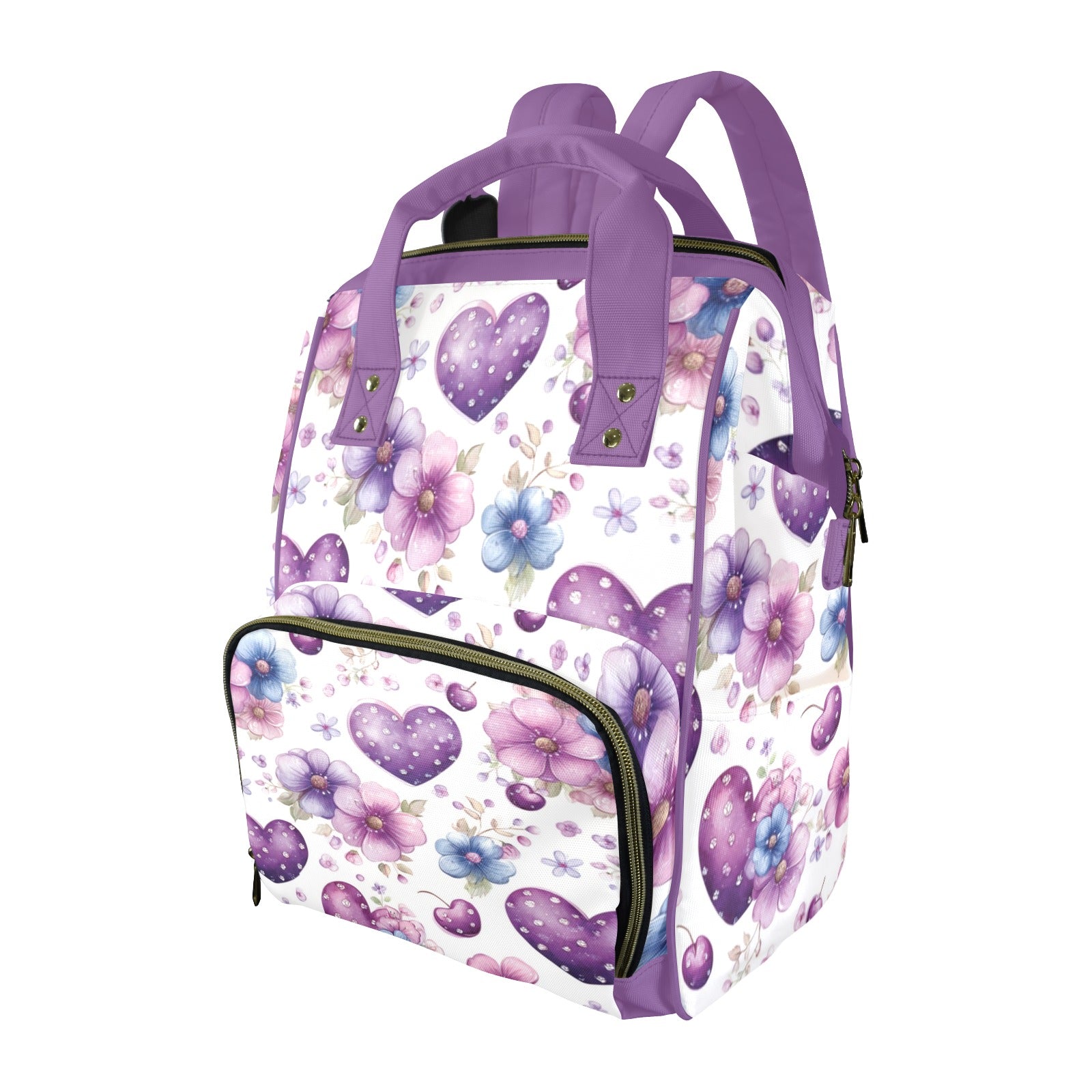 Purple Hearts and Flowers Diaper Bag